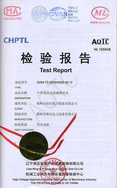 戶外高壓交流隔離開關(guān)檢驗(yàn)報(bào)告